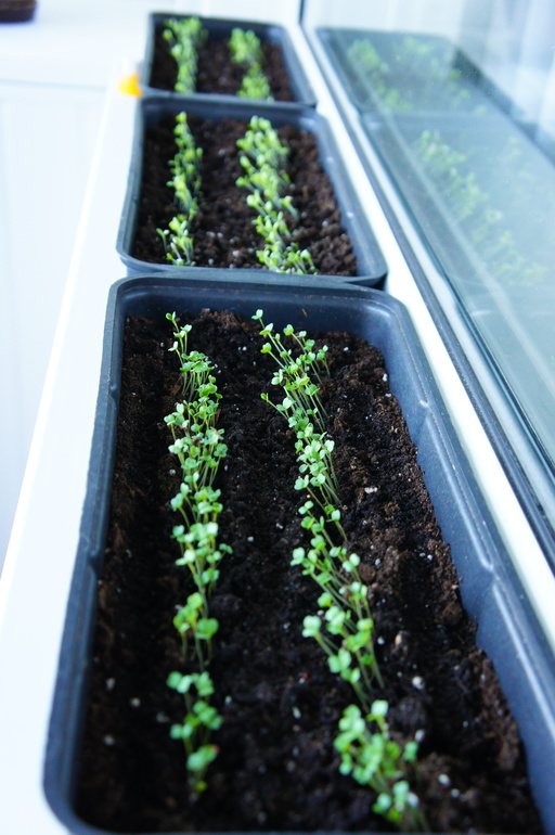 Еще мы посадили салат, базилик и рукколу, но она не взошла почему-то