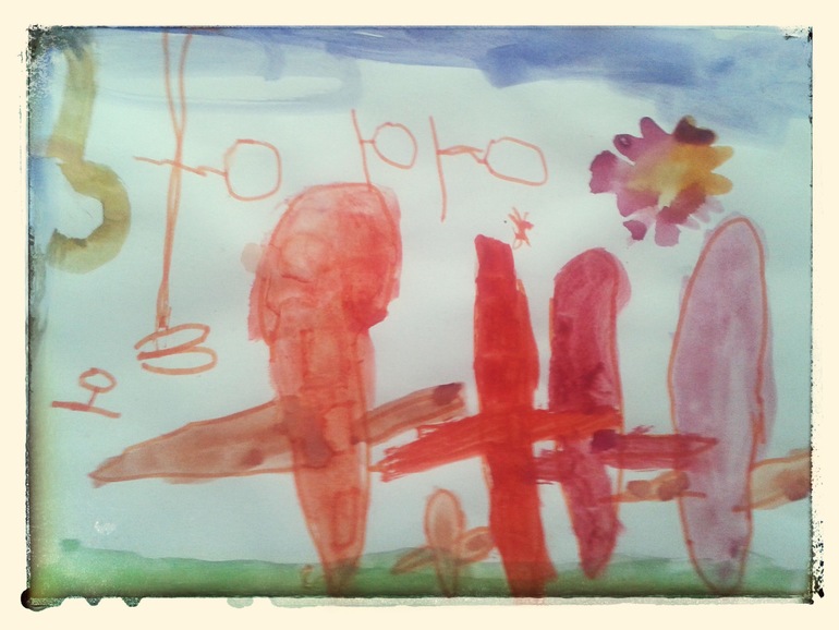 По левому краю картины вы можете видеть... я вижу солнце, которое из зенита идет к закату))))))) Я так это поняла)))))) А на мой вопрос: "Поля, что ты рисуешь?", дочь ответила: "Так, что-то"