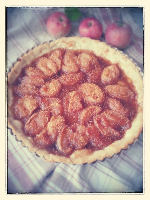 Долго не мудрствуя, пошла к Чадейке и взяла у нее рецепт. Только не стала заморачиваться с переворачиванием пирога - испекла как обычный тарт, вверх "головой")))))