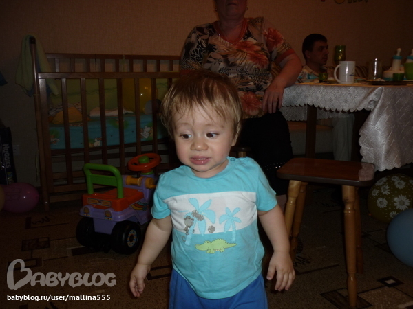 Вчера Вовочке исплнился годик! время пролетело незаметно) Совсем взрослый уже мальчик))) Указательным пальчиком показывает что ему надо и куда ему надо, бегает во-всю, показывает уауой он большой), "сороку" показывает, гоняет мячик и еще много всего,))))