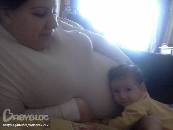 Так внимательно слушает как булькается и толкается ее будущая подружка,всегда спокойно себя ведет когда подруга ее к себе на живот берет)))