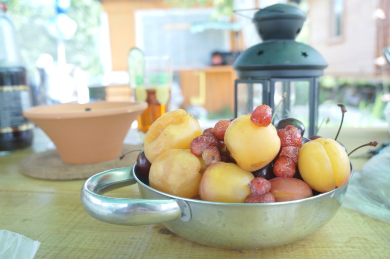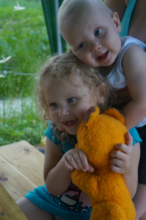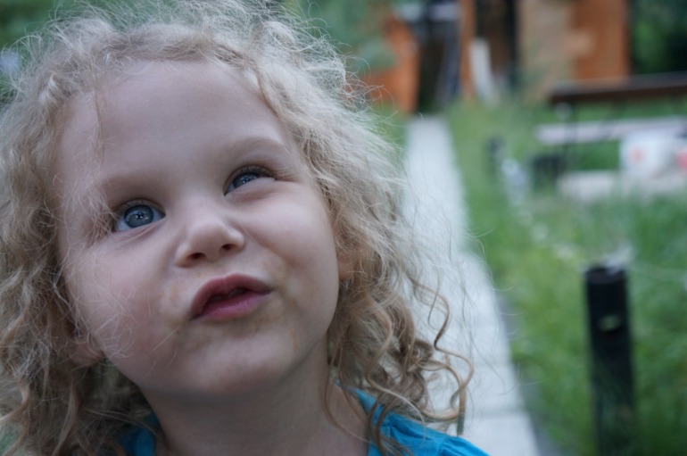 С комарами сын отдувался наверное за всех. Только начинали подживать его блямбы, как тут же случалась на него новая атака. Под занавес под глаз тяпнули, пришлось и капать и примочки делать. Но Сенька все-таки не особо переживал, перепробовал все ягоды, которые дошли к тому моменту, с удовольствием наворачивал чуть подросшие только огурчики, и большую часть времени пребывал в доброжелательном настроении