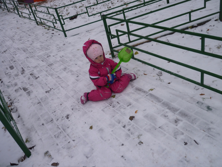 Доча.Дочка как увидела снег в окно утром запищала : Гулять, на улицу, снег хаааачу) Этот комбез одевается который сезон уже, я думала он будет мал, но вполне хватит нам и в этот раз. И любимое лемиго, ножки в тепле и легко. Единственный минус в лемиго ...они скользят.