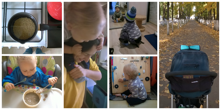 7. На отложенный обед был чечевичный суп, не лучшее блюдо для фудфото :) На закусь я. И тут мне пришла в голову идея сделать сырники невзирая на запреты, что бы порадовать детку хоть раз в неделю. Срочные сборы с валянием на полу и выбеганием на балкон поиграть с базибордом и вот мы снова на улице. Последнее фото для того что бы показать красоту осенней аллеи, а также похвастаться тем что у меня две коляски и засветить свою любимицу Инди :)