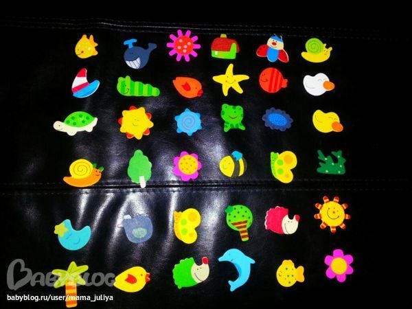 магнитики, сынок на зубок их уже опробывал, для игры нам рановато - но они очень яркие, еще докуплю магнитную доску и будет развлекаться.