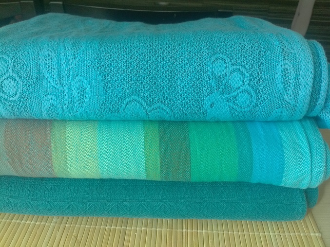 Дидимос павлины экрю со льном, крашенные в бирюзово-голубой, 6ка ПРОДАН