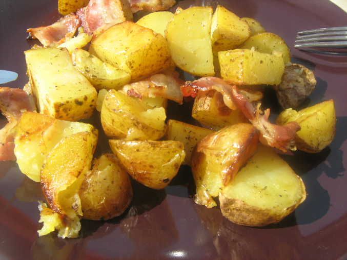 Потом мы смылись домой. Потому что дома нас ждали вкусные вещи. Накрыли стол и празднично поели. Папа жарил мясо, Илюша делал картошку, а я всё остальное.