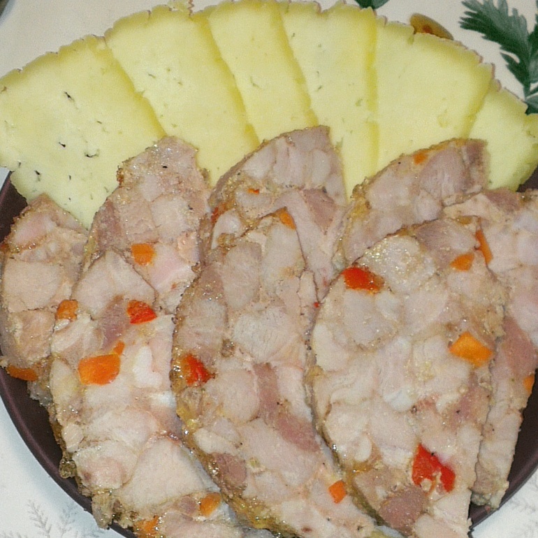 Сыр сделала в воскресенье. Он еще дозреть должен, но мы его уже начали есть. Вкусно. Вчера в ветчиннице сделала ветчину из свинины. Морковка, перчик болгарский и чеснок присутствуют.