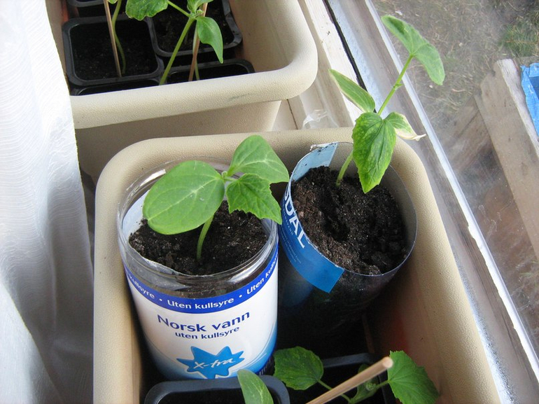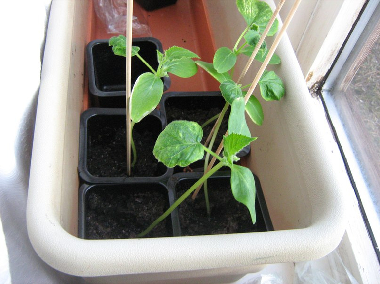 Баклажаны. Один неудачно подсыпан землёй. Надеюсь, выпрямится.