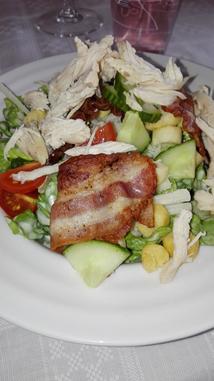 ПраздничноеПапа именинницы - повар дорогого ресторана. Он готовил при нас. На закуску - салат Цезарь с курицей. Основное блюдо - утиная грудка с бататом и вишневым соусом. Обалдеть просто. На десерт мой торт. Он тоже имел успех)