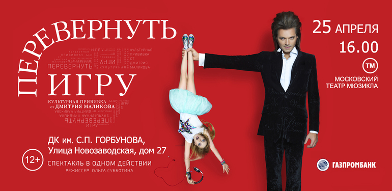 В Москве, в Московском театре Мюзикла ДК Горбунова, 25 апреля в 16-00 стартует премьера спектакля Дмитрия Маликова «Перевернуть игру».