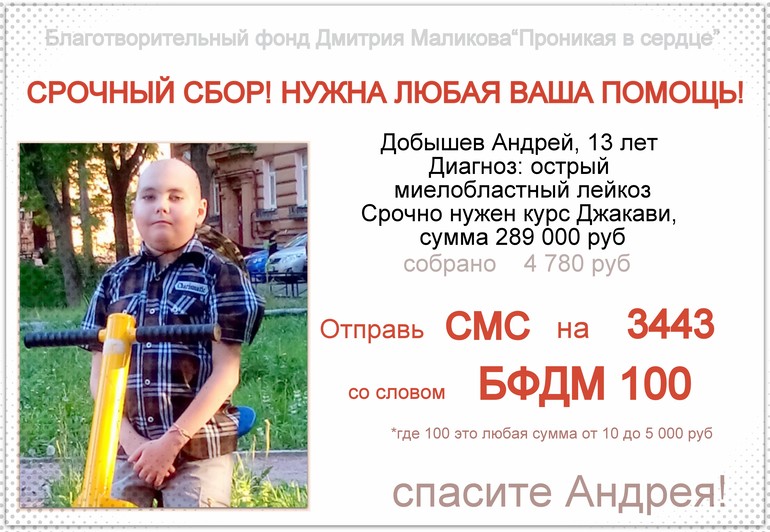 ПРОШУ ПОМОЩИ В РЕПОСТАХ и в СБОРЕ СРЕДСТВ Андрею на жизненно необходимое лекарство!
