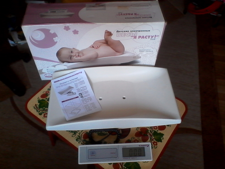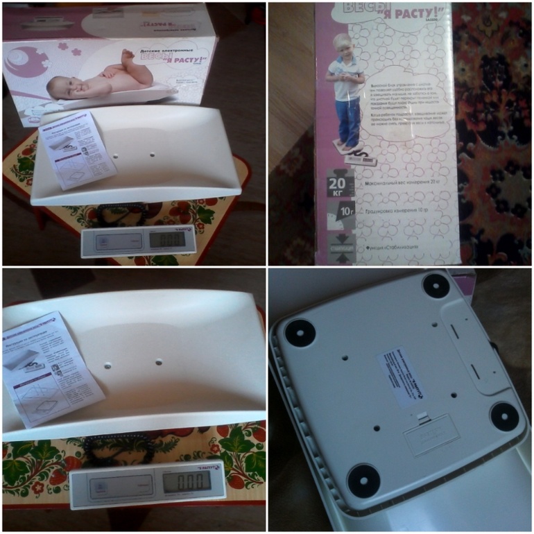 Бывшие в употреблении, но в прекрасном рабочем состоянии весы. Удобный выносной дисплей. Функция «Тарирование» позволяет взвешивать ребенка, не учитывая вес пеленки, на которой лежит малыш. Функция «Стабилизация» показывает точный вес ребенка, даже если малыш не лежит спокойно. Когда ребенок подрастет, взвешивание может происходить без использования чаши весов: ее можно снять, превратив весы в напольные. Максимальный вес измерения 20 кг. Резиновые ножки предупреждают скольжение весов на поверхности. Используется батарейка 9 вольт.