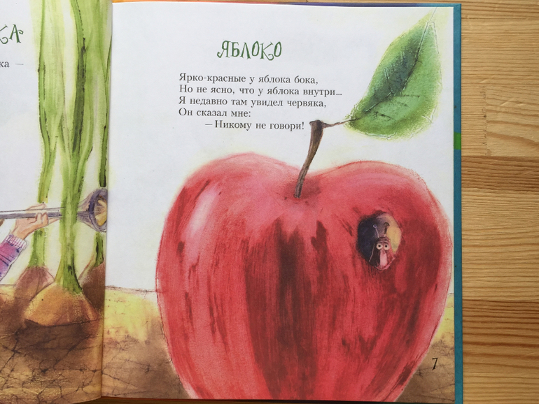 По первоначальному замыслу Элисон Джей это история в картинках. Если не считать энциклопедическую справку в конце, текста в оригинальном издании не было, только иллюстрации, по которым ребенку предлагалось сочинить свой собственный рассказ. Идея книги без слов мне очень нравилась, такие книги развивают воображение и учат излагать свои мысли. И признаться, я немного скептически отнеслась к тому, что в России книга была издана со стихами.