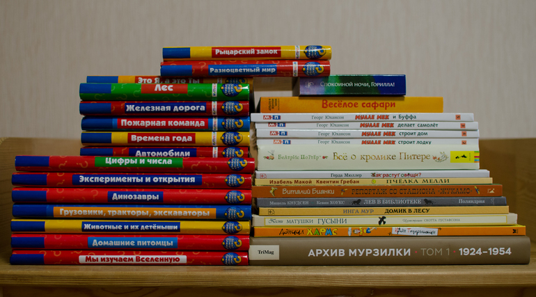 Сфотографировала книги, которые есть у нас (под катом список). О некоторых из них уже писала тут. Если Илюха сегодня днем поспит подольше, напишу об остальных.