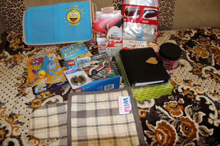 Красивые и веселые кармашки для детской, машина-конструктор, ежедневник для меня, ароматный скрабик, прихватки, листочки для заметок с прикольной надписью,фонарик для Димки, вкусняшки!