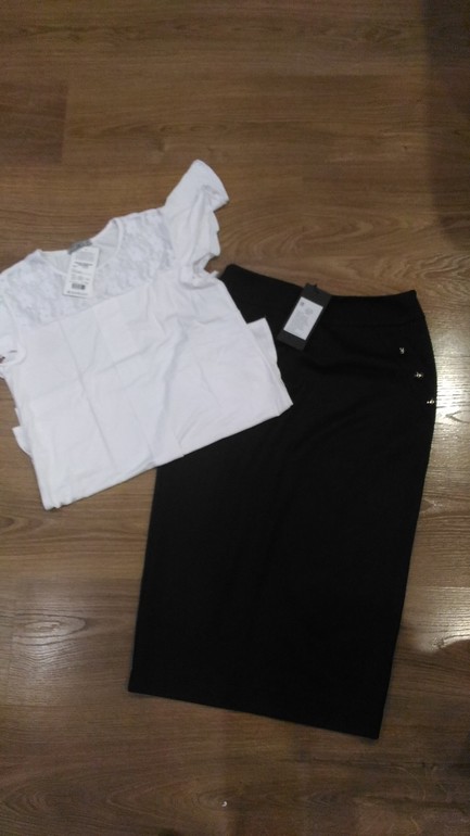 Предлагаю блузочку (р-р 46, но думаю лучше на 44-46) и юбочку ( р-р 44).