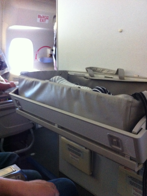 Вылет был в 7 утра, встали рано, в 3, в 4 выехали из дома. Правильно говорят, детей нельзя будить... Нам пришлось) Ну ничего, в машине по дороге в аэропорт малыш продолжил свой сон. В аэропорту проснулся. Сдали багаж, прошли паспортный контроль, без происшествий и истерик, даже не заплакал ни разу)) После пришло время кушать. Брала из дома бутылочку с теплой водой, положила в термосумку. Быстренько сделала смесь, покушали и довольные ходили по магазинам)) Потом опять уснул) Когда заходили в самолет опять разбудили, немного покапризничал, но стоило самолету взлететь опять уснул. Спал у папы на ручках почти весь полет, проснулся уже при снижении. На взлет и посадку никак не реагировал, капризов не было.В нос капала Виброцил. Вот так сладко спит, папу обнимает...))