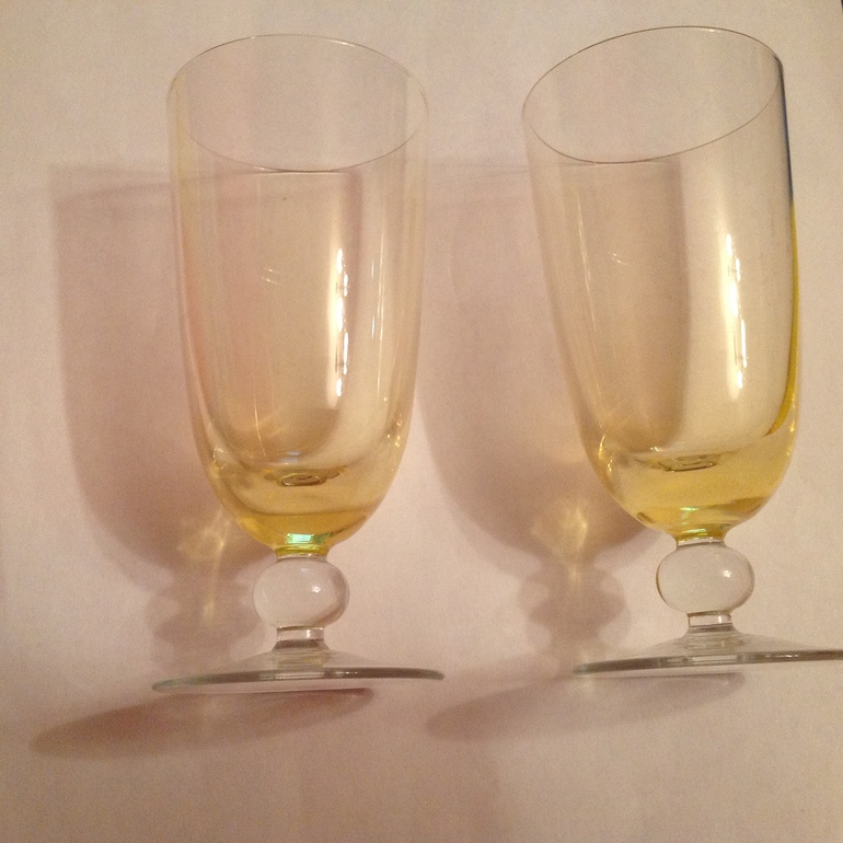 Бокалы 12 штук.Стекло тонкое,цвет лимонный,высота-13 см(ниже фото под САТ)