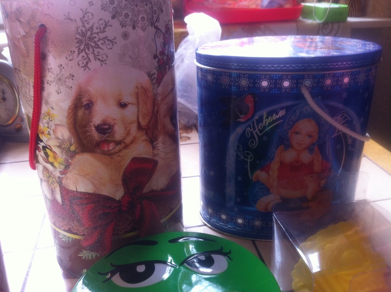 Банки жестяные:с собаками,с девицей и круглая для Ммдемс все по 200.