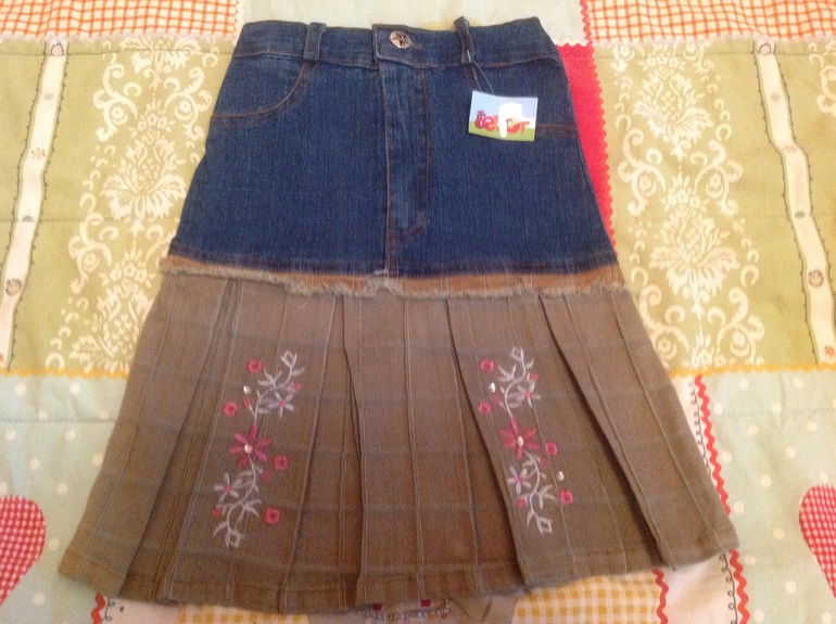 Джинсовая юбка с вышивкой и стразами,размер не знаю (без бирки с указанием размера).Думаю на 6-7 лет,по запросу замеры сделаю.Экв.450
