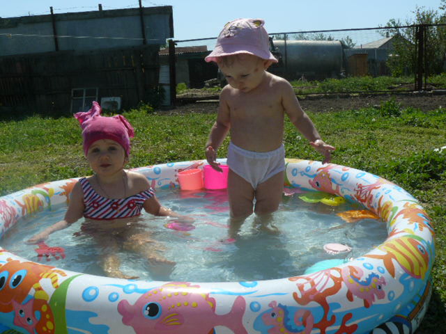 Ну конечно в Волге ещё не купались... Вода не прогрелась! Но в бассейне мило дело,жара +35 стоит, в городе быть невозможно, кайфум в деревне!