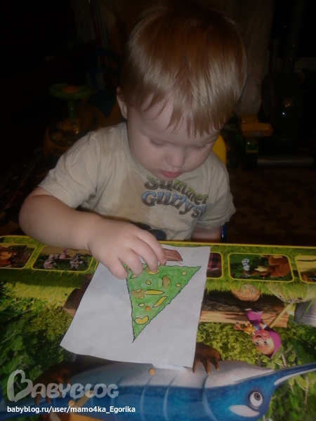 - ещё я слепила из пластилина елочку , но без помощи Егора не обошлось