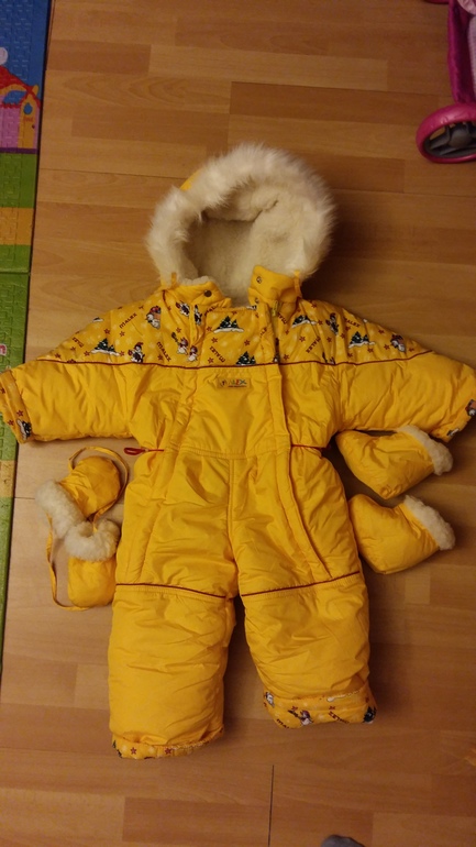 В комплект входят пинетки и варежки также на овчине.Размер 92-98. Гулять можно будет даже в -30,это я гарантирую )В подарок отдам шапку и шарф ручной вязки (вязала моя свекровь )