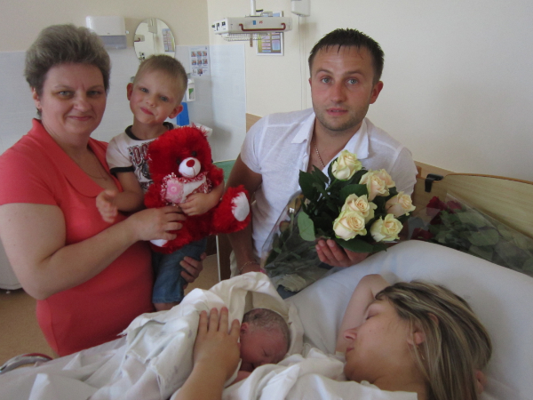 В 13,00 мне начало тужить, но открытие было 9 см. Решили больше не обезболевать. Гинеколог сама руками мне помогала открывать шейку. Боженьки как это было больно. Муж решил подождать за дверями. И когда открытие было 10 см и начались потуги схватки стали 60/100. Мне начали колоть уколы, поставили еще капельницу. В 13,15 мне сказали тужится, но потом сказали только передышивать и ждать пока ребеночек сам будет выходить. Это было самое тежелое, когда хочется тужится, а тебе нельзя. С сыночком я за 3 тужения родила (15 мин заняло), а вот с дочей и дольше, и тежелее. Было больно когда головка пролезала. Козалось это безконечно будет, но в 14,05 у нас родилась девочка. Лезла как и сынок с ручкой вверху. Поэтому и на этот раз я порвалась. Пришлось наложить 3 шва. Малышка родилась вся в смазке белой. По апгару 10/10. Вес 3400 и 51 см. А говорили, что дюймовачка будет...И еще я родила именно в запланировынный день! В день нашей свадьбы! вот подарок от Бога!