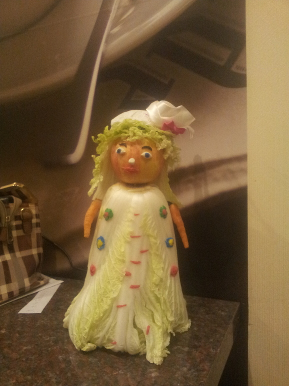 Вот такая королева осени получилась из пекинской капусты. Просила мужа купить кабачек или цветную капусту, а купил пекинскую. Ну ничего в голову больше не пришло. В саду у доченьки будет праздник осени. Главное вместе сделали... ;-)