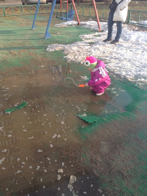 наконец то весна пришла в Москву, такая теплынь на улице, такая красота,народ сразу на улицы высыпал, везде детки бегают, столько теперь у Машки интересных дел, и песочек покапать, сама стала куличики строить и так радуется каждому)) в лужах походить, на велике покататься, Эх красота, так и торчим на улице целыми днями, наслаждаемся, я солнышком и наконец то проснувшейся природой, а Маха своими делами важными