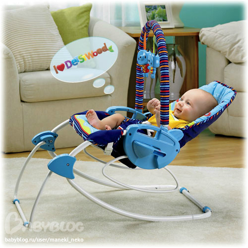 С рождения малыша используется только кресло-качалка в качестве люльки. Откинув ножку, можно зафиксировать положение кресла-качалки, а веселые игрушки на дуге будут часами занимать маленького человечка. Когда малыш подрастет, можно будет использовать кресло-качалку в полном объеме, откидывая только ножку на время кормления. По мере роста малыша спинке кресла можно придавайть все более вертикальное положение. Когда вы почувствуете, что кресло-качалка уже не занимает малыша как раньше – значит настало время качелей. Кресло легко поднимается вместе с малышом и устанваливается на качели. Теперь вы можете выбрать один из трех ржимов качания, а так же развлечь малыша веселой музыкой. Это будет спасением на многие месяцы. Так же легко сидение снимается, если вам нужно взять и перенести малыша в другое место квартиры, не прерывая домашние дела. Обычно к полутора годам интерес к качелям снижается, а к двум - возвращается вновь! Более того, к этому возрасту съемное сидение превратиться в удобное кресло-стульчик для подросшего малыша.
