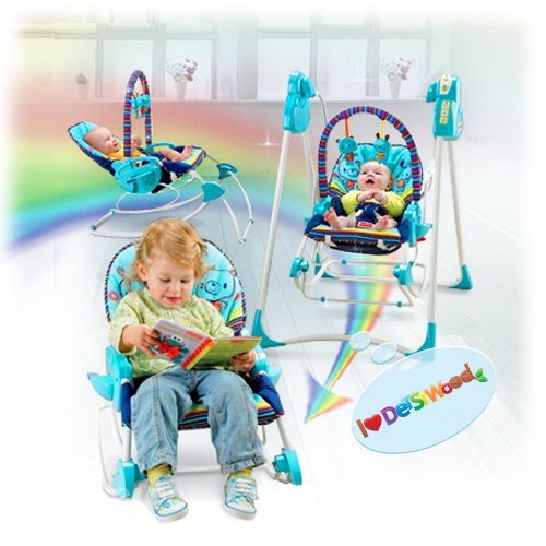 3 вещи в одной: кресло-качалка для новорожденного, качели с музыкой и 2-мя режимами качания, кресло-стульчик для малыша до 3-х лет.