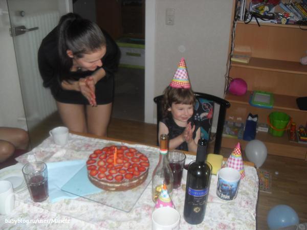 Вот и настала дата, которую мы все очень ждали))) Нам исполнилось 2 годика!!! К сожалению с большим размахом, как в прошлом году мы не смогли отметить, т.к. переехали с мужем в другую страну и на наше торжество смогли прилететь только бабуля(моя мама) и родственники с Будапешта, и сестра Мартина в этот момент была в Германии. Но всё равно мы постарались сделать этот день незабываемым для доченьки. С самого утра она пошла с папой в детский игровой клуб "Хали-Гали", где проносилась по лабиринтам, каталась с горок, прыгала на батуте и кружилась на каруселе. В общем полный восторг))) Потом обед и 2-х часовой сон на востановление сил! Пока Марюша спала, папа надул кучу шариков и повесил гирлянды, а также собрал горку из Икеа и крутящийся стул-яйцо)))) Накрыли стол и приготовились ждать наше солнышко из спальни! Проснувшись и выйдя из комнаты, восторгу не было придела, она не знала к чему кинуться играться и всё время повторяла "Шарики, шарики, шарики"(очень любит шарики)