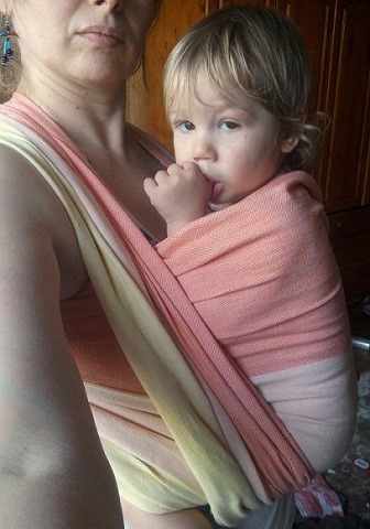 2. Гирасол Кара Кара. Редкая редкость, малолимитный эксклюзив, единственный в СНГ. Мягкий, приятный хлопушек. Но, в отличии от своих стандартных собратьев, весьма грузовозен. Обнимает, спину и плечи бережет, тоддлера несет на ура. Состояние - один раз намотан, в этот же раз и сфоткан