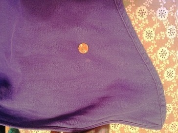 Очень мягкая, суперразношенная, еще с черной этикеткой. Как и положено старичкам, имеет легкие изъяны - пятно от отбеливателя, поставленное кем-то до меня, еще пятнышко неизвестного происхождения (оба сфотографированы в сравнении с 10 копейками) и кое-где заломы по бортам. На фото все есть, цена отражает состояние.
