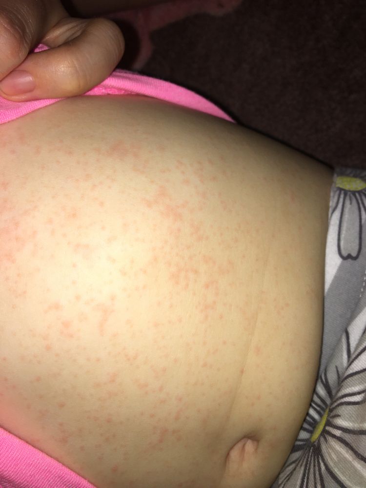 Жду педиатра. Сыпи стало больше. Дочка почти не ест. Сыпь уже везде. На ощупь сыпь на спине и животике горячая.