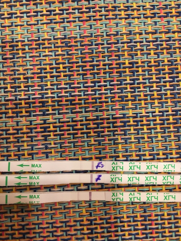 Тесты сверху вниз сегодня утро, день, вечер, после укола хгч больше 2-х суток.