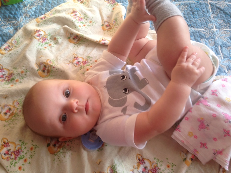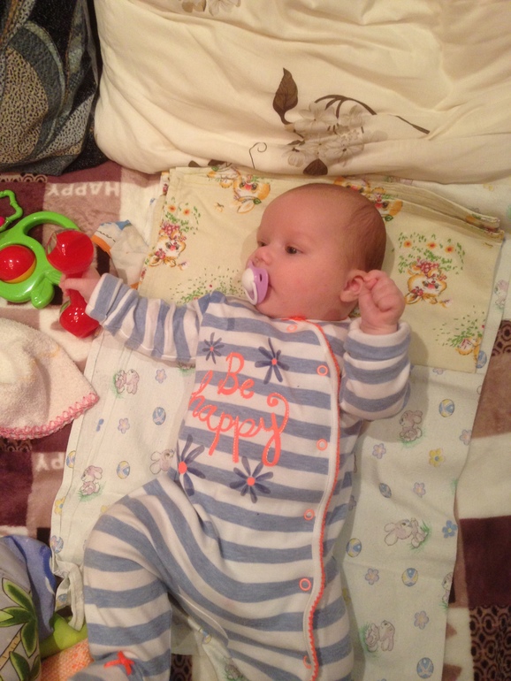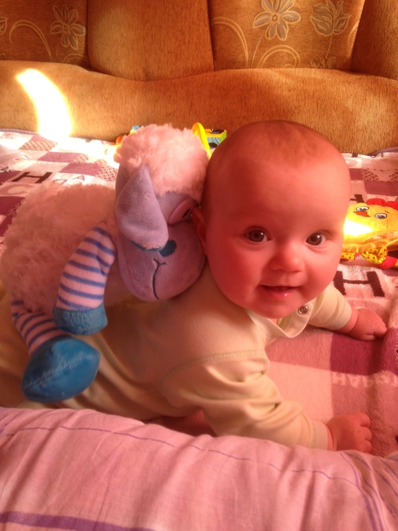 Из последних наших достижений -весим около 8 кг, носим 68 размер и умеем все, что должен уметь ребенок в 5 месяцев,крутимся во все стороны со спины на живот и обратно и вокруг своей оси, пятимся назад, поднимаем попу вверх, но ползти вперед пока нам не осилить, гулим, визжим, кричим, фыркаем, если сердимся, улыбаемся всем беззубым ртом, смеемся, требуем ежесекундного внимания к своей персоне, иначе начинается нытье, плавно переходящее в крик и истерику.