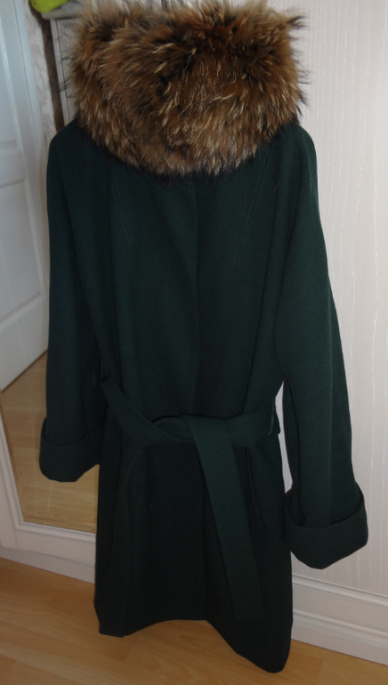 Пальто на осень-весну, одевала всего несколько раз, состояние идеальное, в подарок воротник из натурального меха енота. Размер 42, крой прямой, верх чуть свободный типа летучей мыши, но несильно. Состав 75% шерсть, 15% полиэстер, 10% вискоза. Цвет хвойный. 7000 руб.