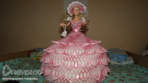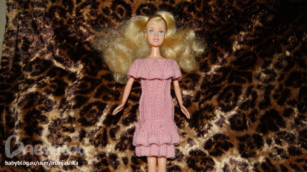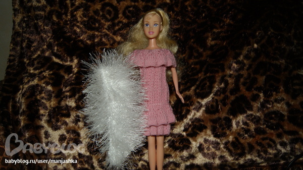 Сегодня вечером наша Барби пойдет в гости к новым соседям. По этому случаю она решила надеть классическое платье с оборками дымчато-розового цвета. А на случай прохладного вечера она захватила с собой пушистый белый палантин.