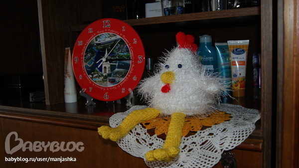 Началось все в прошлом году, с того, что у нашей Алины в детском саду к Пасхе сделали композицию и разместили с крашеными яйцами чучело петуха))) Поэтому в этом году Лена (это мама Алины) попросила меня связать детишкам Пасхальную курочку. Собственно говоря, вот что у меня получилось... Очень надеюсь, что Алине и ее друзьям в саду понравится эта белая пушистая птичка.