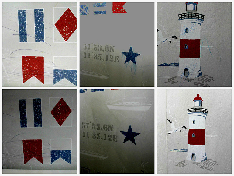 Тереть не сильно, иначе обои могут лишиться рисунка. Фото "до-после" в процессе и результат (маяк). Резкость специально прибавила, чтобы было видно отчётливо.