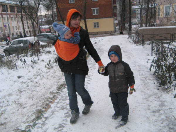 На мне - куртка Ямама, флисовая кормительная толстовка ILM и на Экторе их же флисовый комбенизон. Шапка "но нэйм"))) Вообщем, именно в таком сочетании гуляю всю последнюю неделю. Удобно. По теплоте - не для минуса, но поскольку гуляем мы не более получаса, мерзнуть ни я, ни ребенок не успеваем.