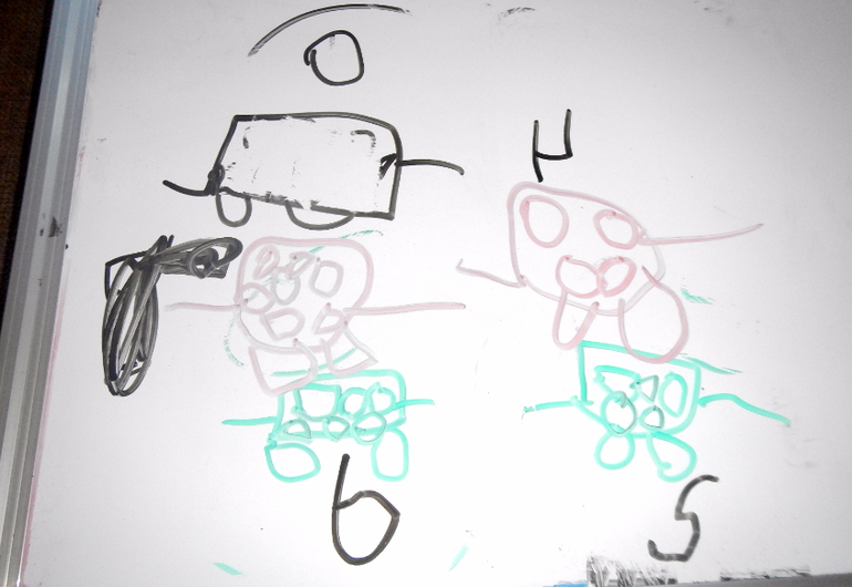 ФилиппНеожиданно хорошо пошло письмо (и рисование) на доске маркером.