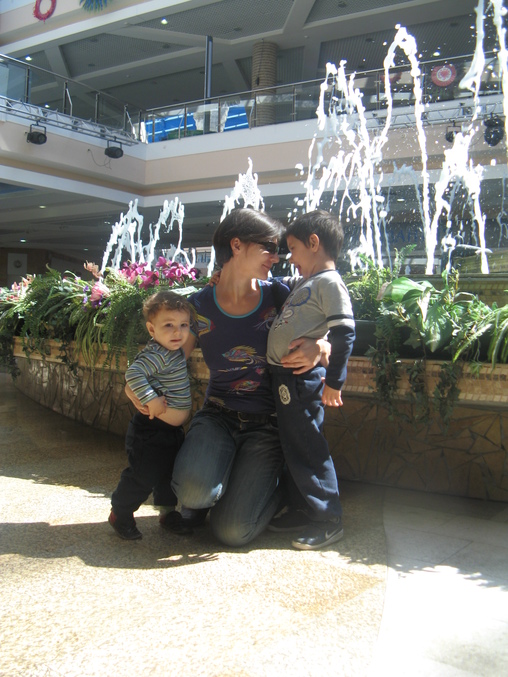 Я с детьми. Не особо симпатично, зато очень жизненно))) Я безрезультатно пытаюсь собрать детей в кучу и уговорить Филиппа сфотографироваться (посмотреть в объектив, не высовывая язык и не поворачиваясь всеми частями тела, кроме лица)... Уговорить не получилось, но мне нравится, с какой нежностью я смотрю на старшего сына. Я думала, что меня на это уже не хватает от усталости.