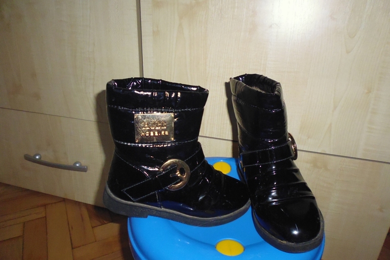 3. Зимние сапожки (фабричный Китай). Размер 27, длина стельки 17.5 см. Ткань верха - искусственная лакированная кожа, внутри - натуральный мех. Очень теплые и удобные. Состояние отличное (царапины на фото - искажение самой фотографии). Цена 800 рублей.
