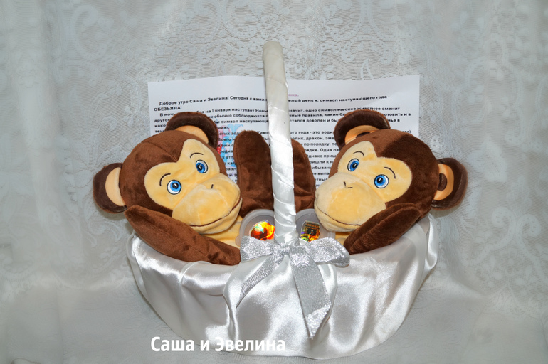 Доброе утро Саша и Эвелина! Сегодня с вами проведу целый день я, символ наступающего года - ОБЕЗЬЯНА!