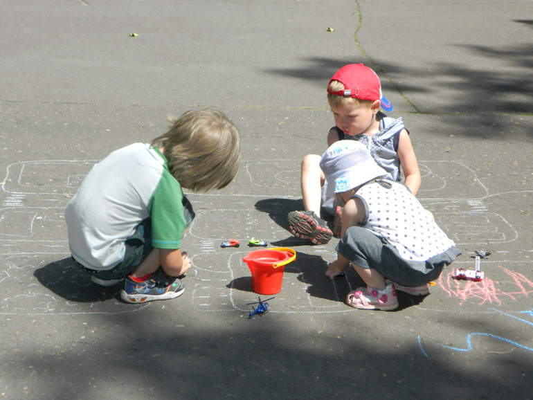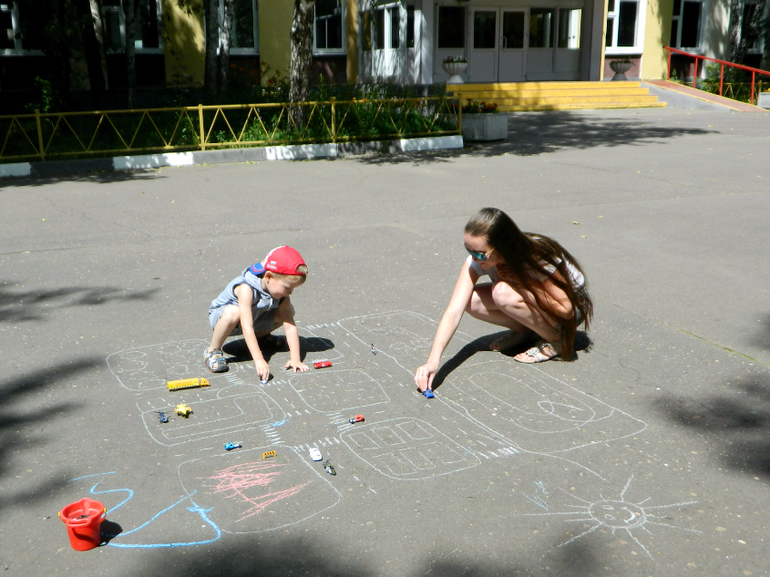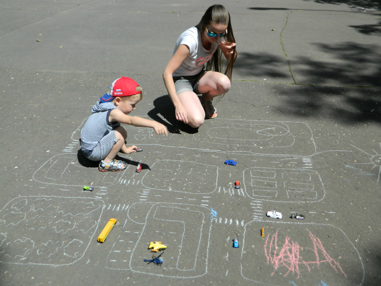 Это оказалось так заразительно. Я сама ползала по асфальту не жалея коленок. Плюс ко всему это оказалось заразительным и для других деток.