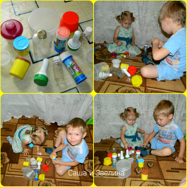Игра: разложить перед ребенком бутылки и отдельной кучкой крышки - попросить закрутить все крышечки